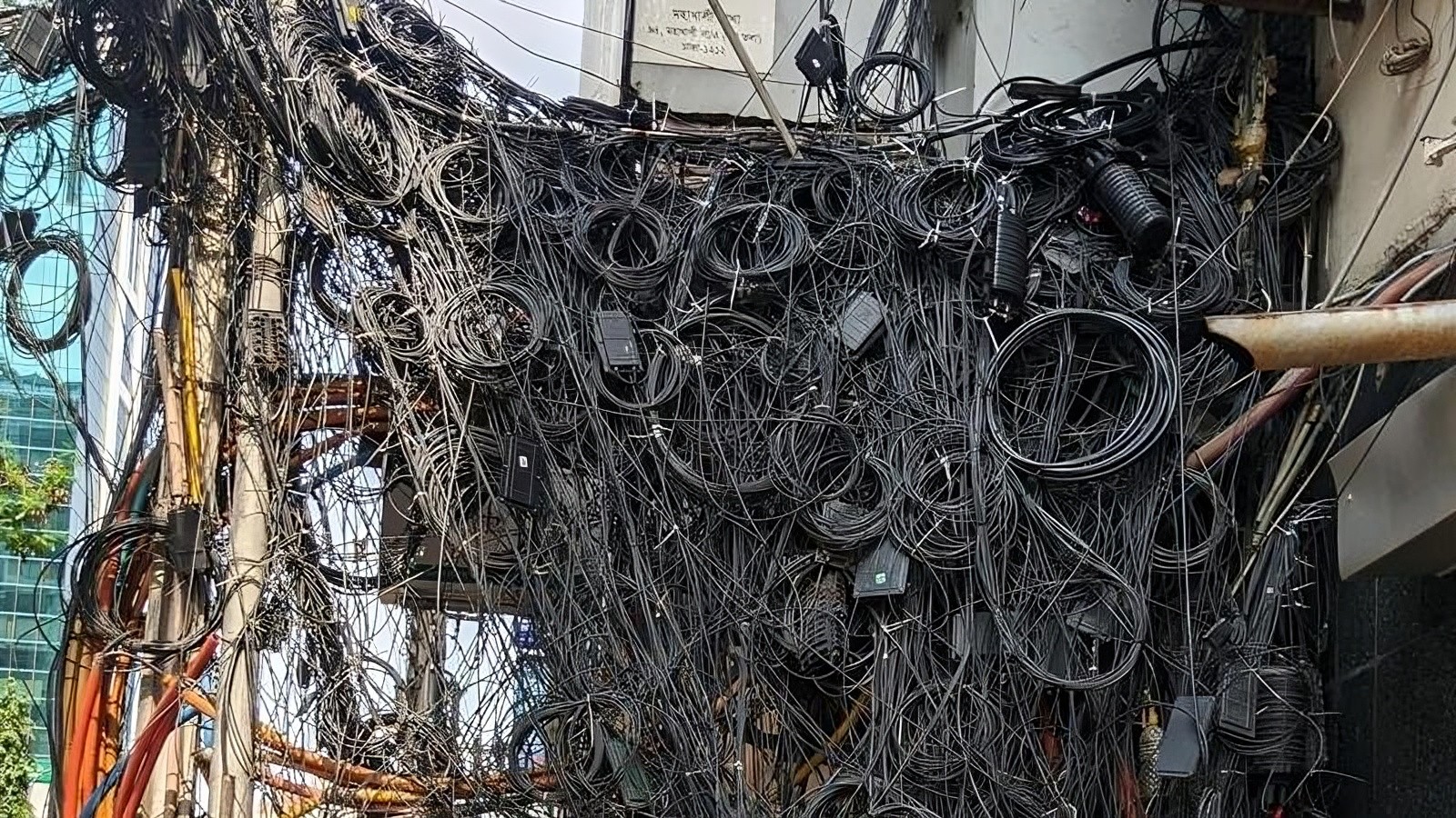 রাজধানীর যে কোনো এলাকায় গেলেই চোখে পড়ে বিশৃঙ্খলভাবে ঝুলন্ত তারের জট। গুলশান, বনানী, ধানমন্ডি, মিরপুর, পুরান ঢাকা, যাত্রাবাড়ী—সব জায়গাতেই একই চিত্র। কোথাও বিদ্যুতের তারের সঙ্গে ঝুলছে ইন্টারনেট ও ক্যাবল টিভির তার, আবার কোথাও তার কেটে রাস্তায় পড়ে আছে।