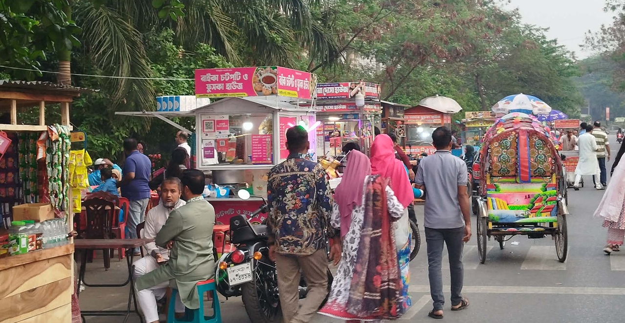 রফিকের সঙ্গে কথা বলে আরও জানা যায়, এখানে তেমন ভিড় না থাকলেও পিএসসি ভবন ও সংগীত কলেজ সংলগ্ন মোড়ে মানুষের চাপ বেশি। কারণ সেখানে শিশুদের জন্য অস্থায়ী পার্ক করা হয়েছে।