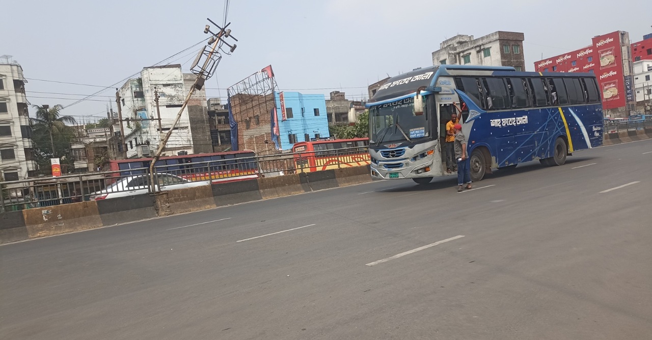 গাবতলী বাস টার্মিনাল ঘুরে দেখা গেছে, আজ যেসব বাস ঢাকা ছাড়ছে, সেগুলোতে যাত্রী নামমাত্র। আর যেসব বাস টার্মিনালের উল্টো পাশের সড়ক দিয়ে ঢাকায় ঢুকছে, তারা যাত্রী নামিয়ে টেকনিক্যাল মোড় হয়ে ঘুরে ফের গন্তব্যে যাওয়ার প্রস্তুতি নিচ্ছে।