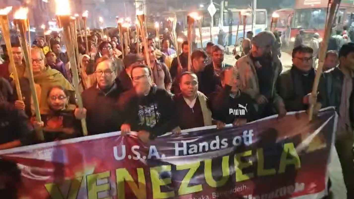 ভেনেজুয়েলায় মার্কিন হামলা ও মাদুরোকে আটকের প্রতিবাদে ঢাকায় মশাল মিছিল