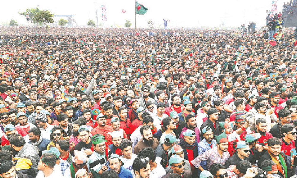 তারেক রহমানের গণসংবর্ধনায় হাজির হয়েছিলেন লাখো নেতাকর্মী। গতকাল বিকেলে রাজধানীর ৩০০ ফিট সড়কে তিল ধারণের ঠাঁই ছিল না। ছবি :